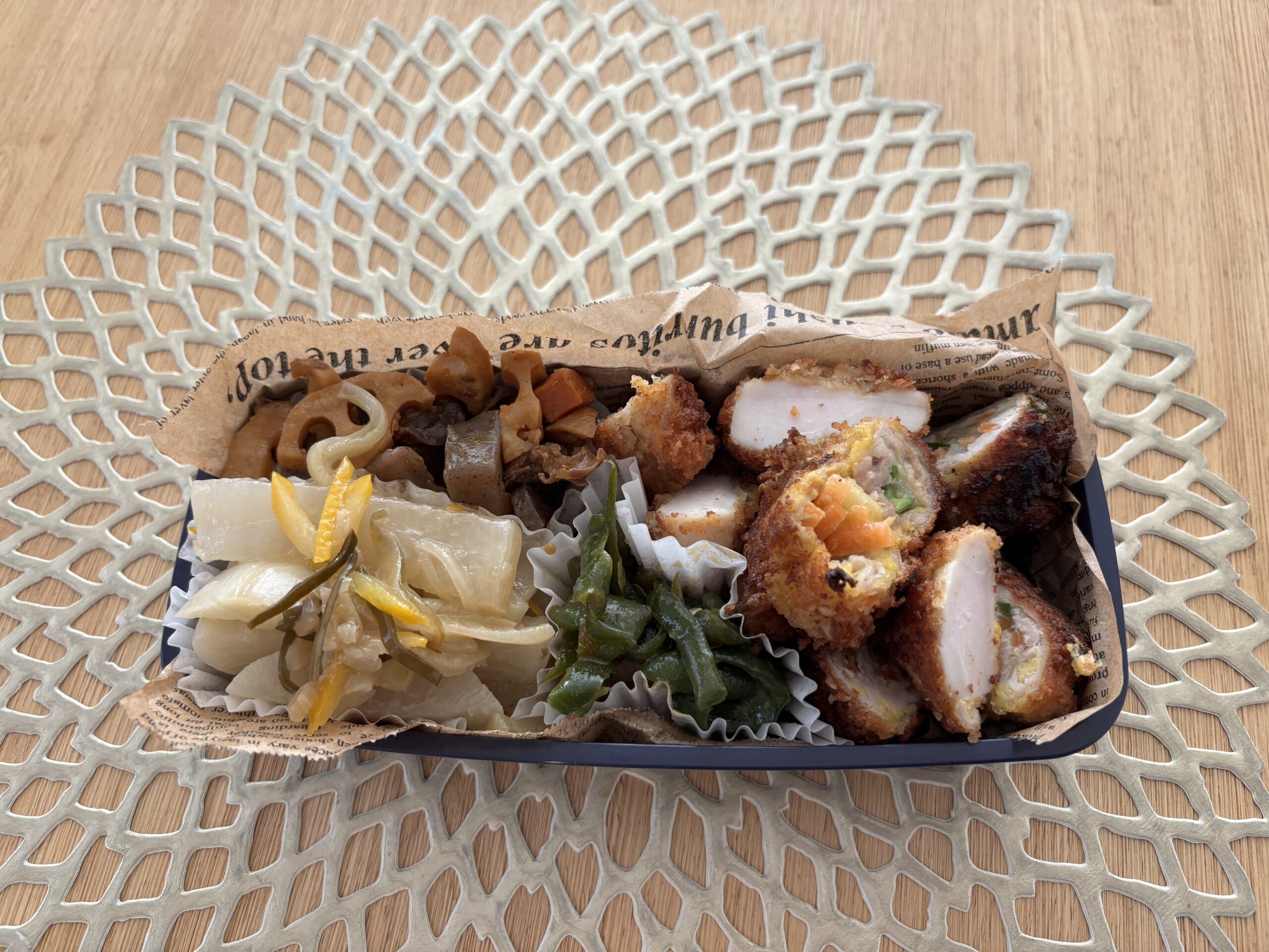 最終的にこの揚げ物たちもお弁当箱にいれたらそれほどの焦げも気になりませんでした。実際食べたときには焦げ付いた味は全くありませんでした。パン粉はやっぱり粉砕したてが焦げやすいので中ですね。これも水のバランスになります。